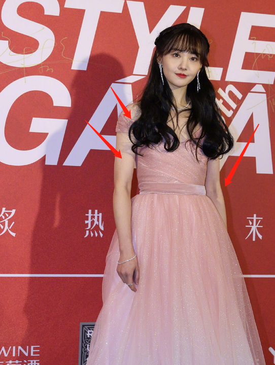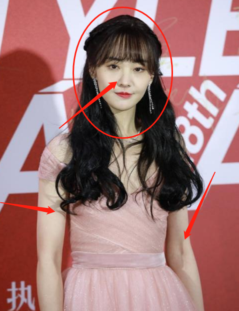 从全身图上看,郑爽精致就跟芭比娃娃一样,脸看起来小小的,脖子也很修长,长裙的腰线高,把她的腿也拉长了不少,显得有气质了很多,只要把噘嘴的毛病改掉,就更好了。希望郑爽能保持这样的状态下去,不要再暴瘦了。