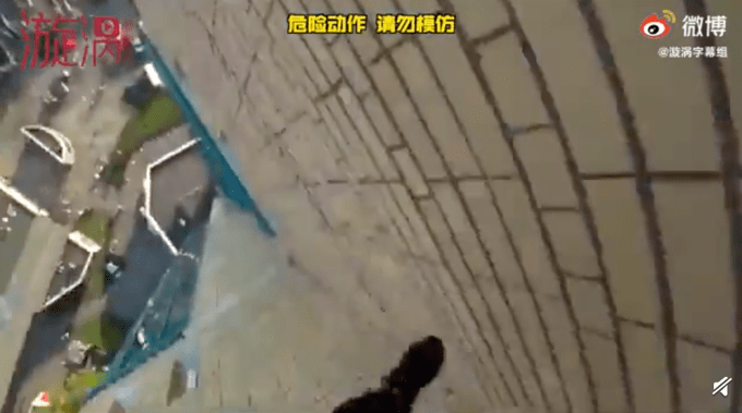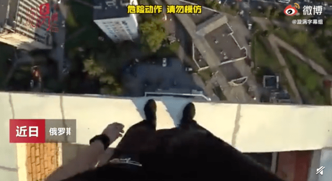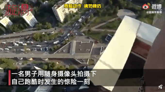 惊魂一刻!俄男子跑酷脚滑摔下房顶死里逃生,侥幸抓住电线狂喘气