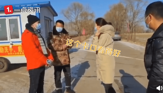 1月19日,黑龙江齐齐哈尔,一名卡口防疫志愿者遇镇长检查工作。志愿者认真负责,耿直发问:怎么证明你是镇长?工作人员称屋里人就能证明。随后,证明镇长身份后,镇长为志愿者点赞:这个卡口看的好
