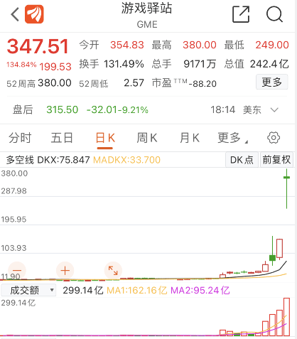 值得一提的是,作为战役“主战场”的游戏驿站,2020年公司前9个月归母净利润亏损2.96亿美元,目前公司每股净资产在4.76美元。