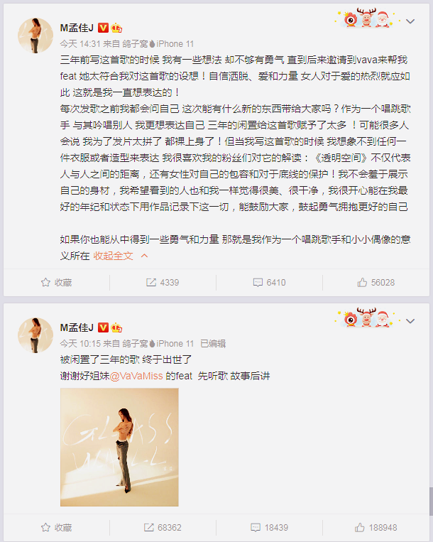 2021年1月28日,歌手孟佳发行了自己的新歌《透明空间》,该首歌与VaVa毛衍七合作,这首新歌封面照片公开后,引发了不少网友的热议,起初大家的评论皆是孟佳太敢了,竟然半裸出镜,长发披散在身后,两手环抱在胸前,破洞牛仔裤配细高跟鞋,也不得不承认身材确实挺棒的。