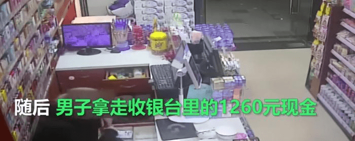 后来,该男子趁着电源不注意偷吻了店员,店员彻底崩溃。随后,男子直接打开收银台拿走了里面的1260元钱。