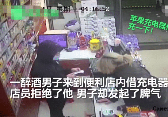 奇葩!失恋醉汉便利店内接充电器,被拒后强吻男店员,并抢走千余元