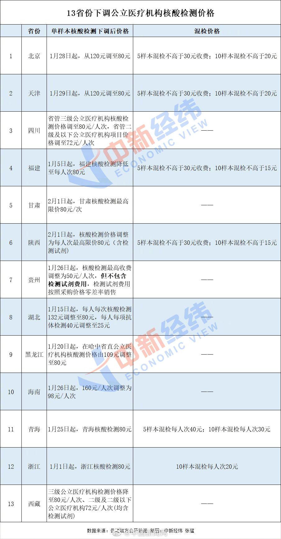 【#核酸检测成返乡通行证# #13省份已下调核酸检测价格#】今年春节,核酸检测成返乡“通行证”。记者发现,2021年来,已有北京、天津、四川、福建、甘肃、陕西、贵州、湖北、黑龙江、海南、青海、浙江、西藏13省份公立机构下调核酸检测费用。有9省份单样本公立机构核酸检测最高限价下调至80元/次。此外,北京、陕西、保定等地核酸检测费用纳入医保。(中新经纬)详情:http://t.cn/A65XYi0P