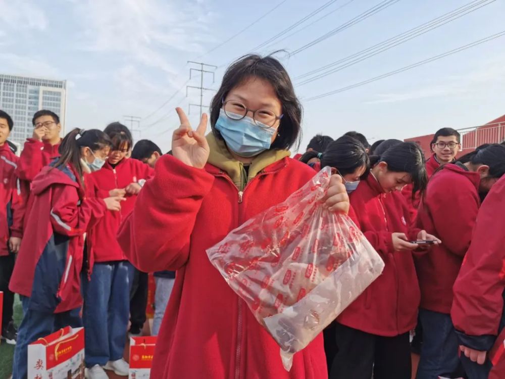 现场给学生发猪肉