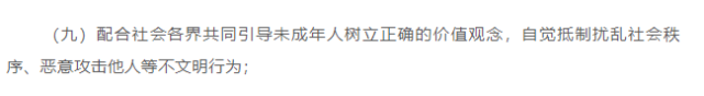最近大家关注的“饭圈互撕”“艺人是否需要管理粉丝”等热门话题,在“管理办法”中也找到相关的答案,“配合社会各界共同引导未成年人树立正确的价值观念,自觉抵制扰乱社会秩序、恶意攻击他人等不文明行为。”