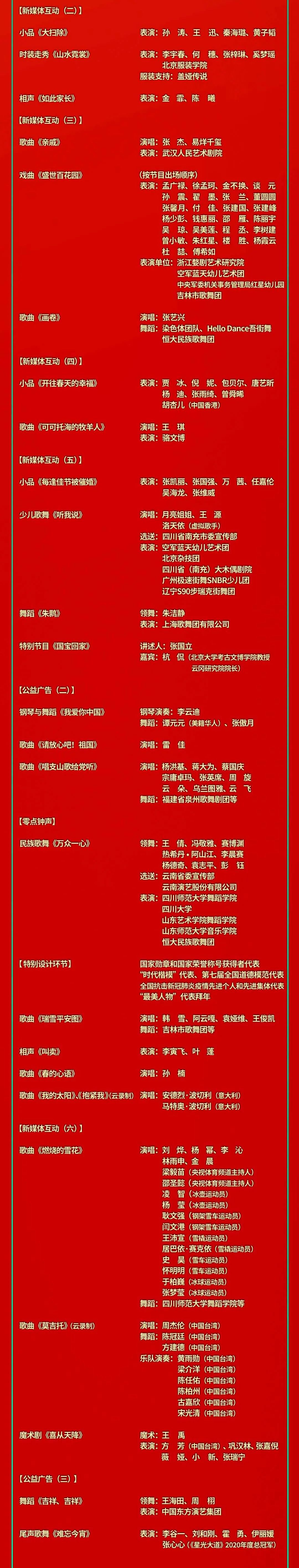 创意类节目在创新上下足功夫。特别节目《向祖国报告》以航天梦助力强国梦,以决战脱贫攻坚取得决定性胜利托举出小康梦圆。“2020年脱贫攻坚奖”获奖代表来到春晚现场,和全国人民一起分享胜利的喜悦。特别节目《国宝回家》以讲述的方式来串联归国流失文物展示,立足于对中国传统文化的保护与传承。