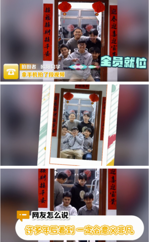 (原标题:意义非凡!男生和室友在宿舍拍年味全家福)