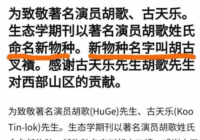该物种是为致敬著名演员胡歌、古天乐先生而命名。