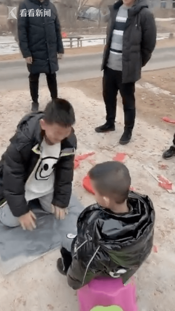 11岁的外甥给5岁小舅舅磕头拜年,没想到在说贺词时口误说出“早生贵子”,瞬间笑翻全场。