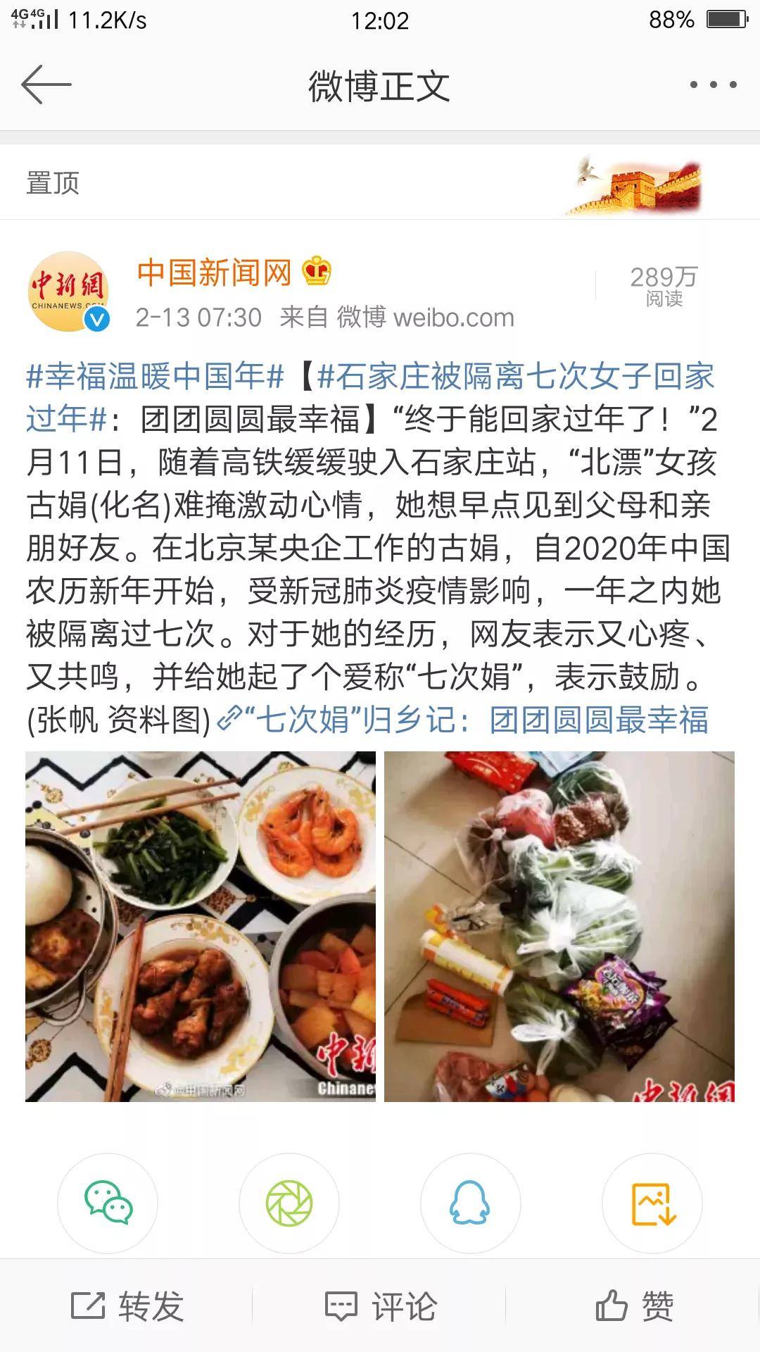 最幸福的时刻!石家庄被隔离七次女子回家过年,网友称为“七次娟”!