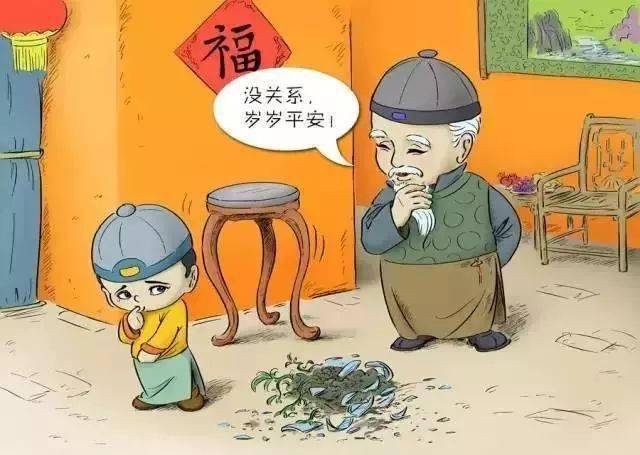 旧时民俗认为正月打碎器物,新的一年内会有不好的运势。所以打碎器物时要赶紧说一声"岁(碎)岁(碎)平安"或者"旧的不去新的不来"等等,以作禳解。