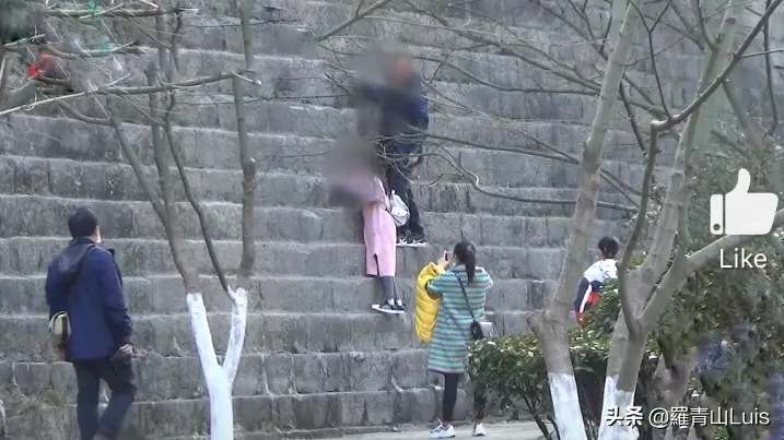 这么危险的行为,居然還男女老少都跟着爬,什么智商?真是中了邪了!
