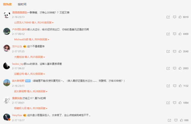 此事也引发了网络热议,虽然乔先生在视频中表示提前跟商家及外卖小哥都沟通了,也多花了运费才确定叫外卖的,但是大部分网友还是在批评点外卖的这些人,认为30块钱严重不值,为外卖小哥叫屈,毕竟400多级台阶才换来30块钱的快递费。