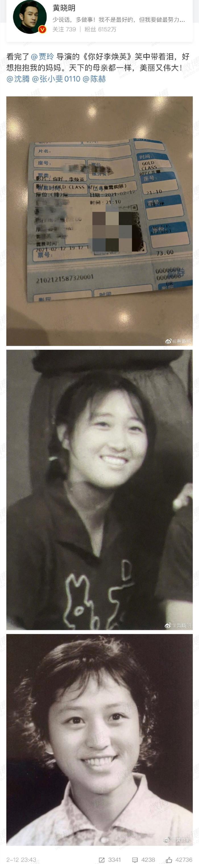 2月16日下午,黄晓明发微博晒了3张照片,大家在一起包饺子,照片里没有baby,文案里也没有baby。2月15日,黄晓明发微博表示刚看完贾玲导演的《你好李焕英》,力赞天下的母亲都一样,美丽又伟大。