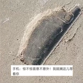 近日一段视频在网上引起热议,一部手机被镶在水泥路路中,机壳大半已经露出路面格外醒目,这个手机的机主是河北衡水的田先生,视频也是他拍的,他称:三年前修路丢的手机,下午无意间看到了!