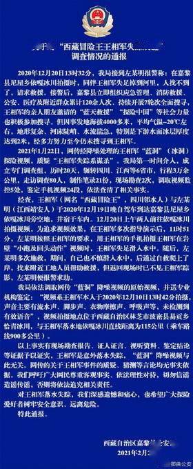 警方发布“西藏冒险王王相军失踪成谜”调查情况通报,原文如下: