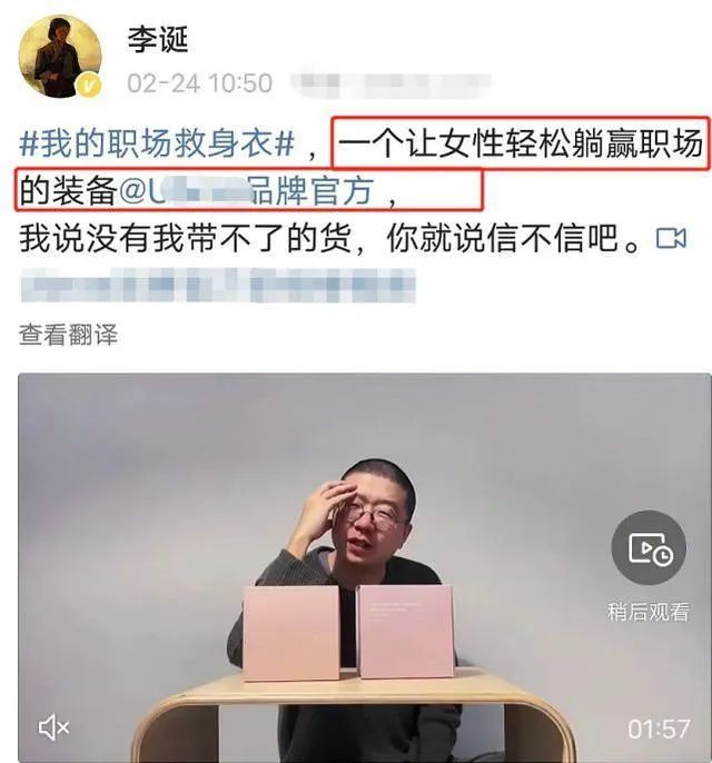2月24日,谐星李诞在其个人社交平台,为女性内衣品牌Ubras带货,其话术中的“让女性轻松躺赢职场”引发争议。