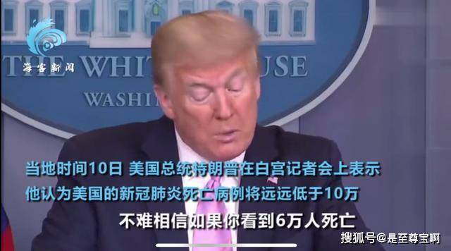 当地时间10日,随着美国疫情的迅猛发展,美国新冠肺炎确诊病例超50万例,累计死亡18666例,美国总统特朗普在白宫记者会上表示,他认为美国的新冠肺炎死亡病例将远远低于10万,很可能只有6万人,“ 如果你看到6万人死亡,你永远不会对此感到高兴,但现在比我们最初被告知和想象的要少得多。
