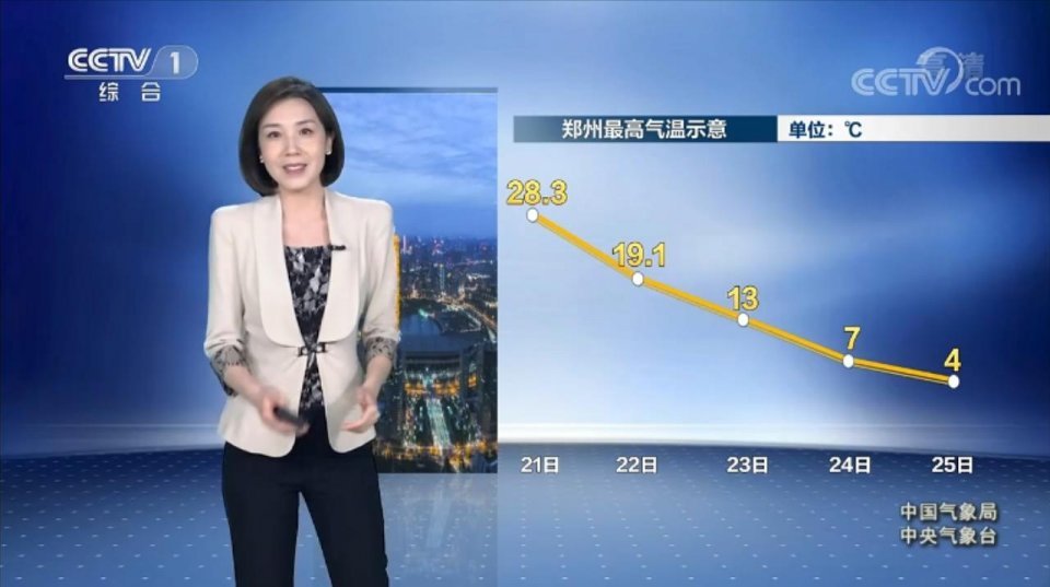 城市中我们来看一下郑州,气温是接连下滑,最高气温会降到只有4度,短短几天,仿佛穿越了不同的季节,提醒您注意衣服的增减搭配。