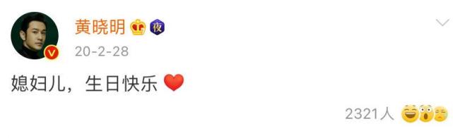 【首发】2月28日,是女神angelababy32岁生日,其老公黄晓明在零点过后发文“生日快乐”为其庆生,寥寥四字,言简意赅,有点生硬!而且有网友注意到去年baby生日时,黄晓明还曾加“媳妇”二字,甜蜜为其庆生“媳妇儿生日快乐”而今年却省略“媳妇”二字,这一细节很微妙。