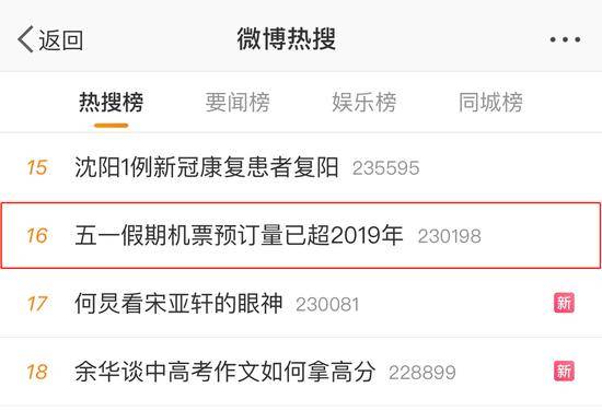 3月13日,#五一假期机票预订量已超2019年#登上热搜。