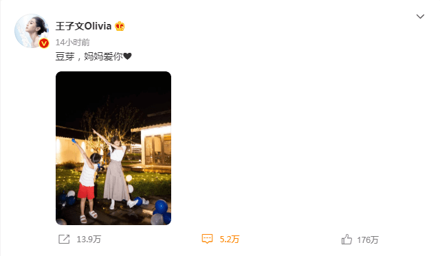 日前,知名女星、艺人@王子文Olivia在综艺节目《怦然再心动》中,首次承认自己有一个7岁的儿子,迅速在网上引起热议。当晚她在微博上晒出了和儿子的合影,并发文向儿子告白:“豆芽,妈妈爱你。”照片中两人摆出同样的姿势。