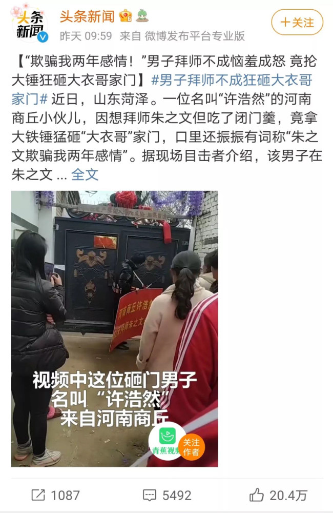 拜师不成反砸门,网友一句话道破了这件事的真相: