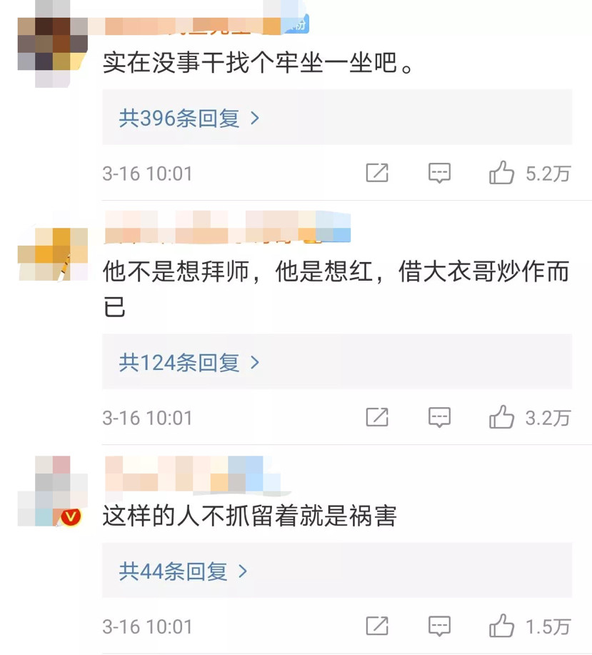 “他不是想拜师,他是想红,借大衣哥炒作而已。”