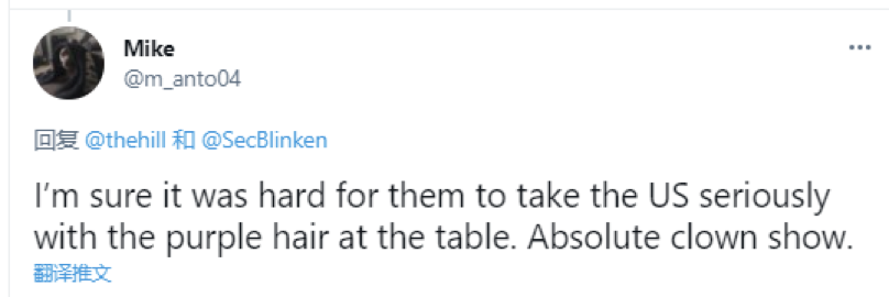 美国带一位紫色头发的翻译来,