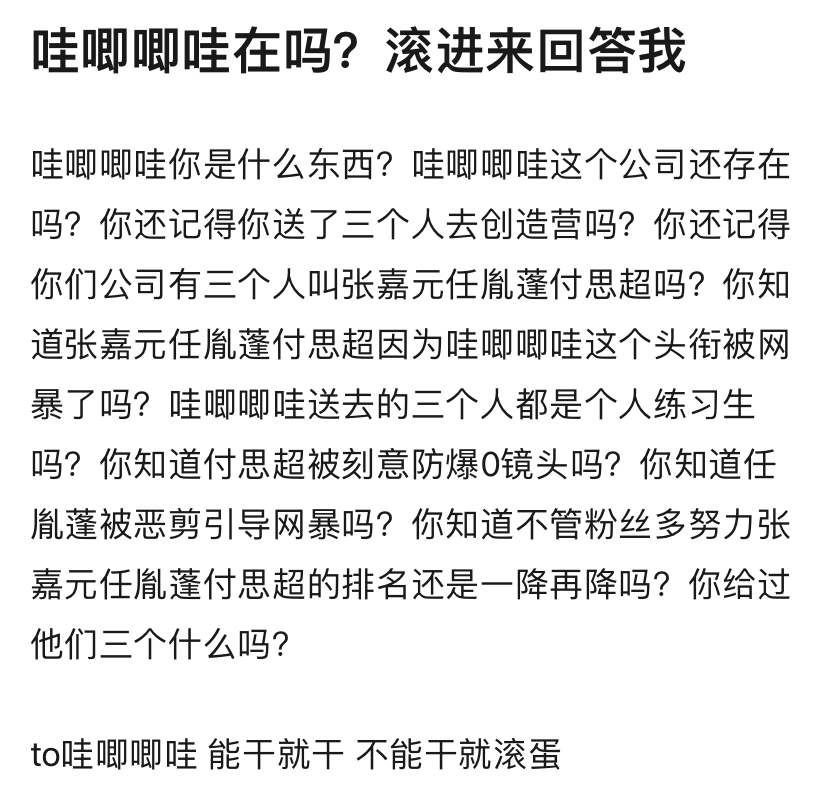 哇唧唧哇成立于2017年,在短短三年的时间里,打造出了很多优质的爱豆,网友们一直在骂哇唧唧哇倒闭了,难道这次要真的成真了吗。