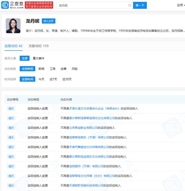 3月29号,有消息称龙丹妮卸任九家公司的实际控股人,其中包哇唧唧哇,涉及公司实际控制人从“龙丹妮”变更为“彭力、天津高星文化发展有限责任公司”。 也就是说龙丹妮不再管哇唧唧哇这个公司了。