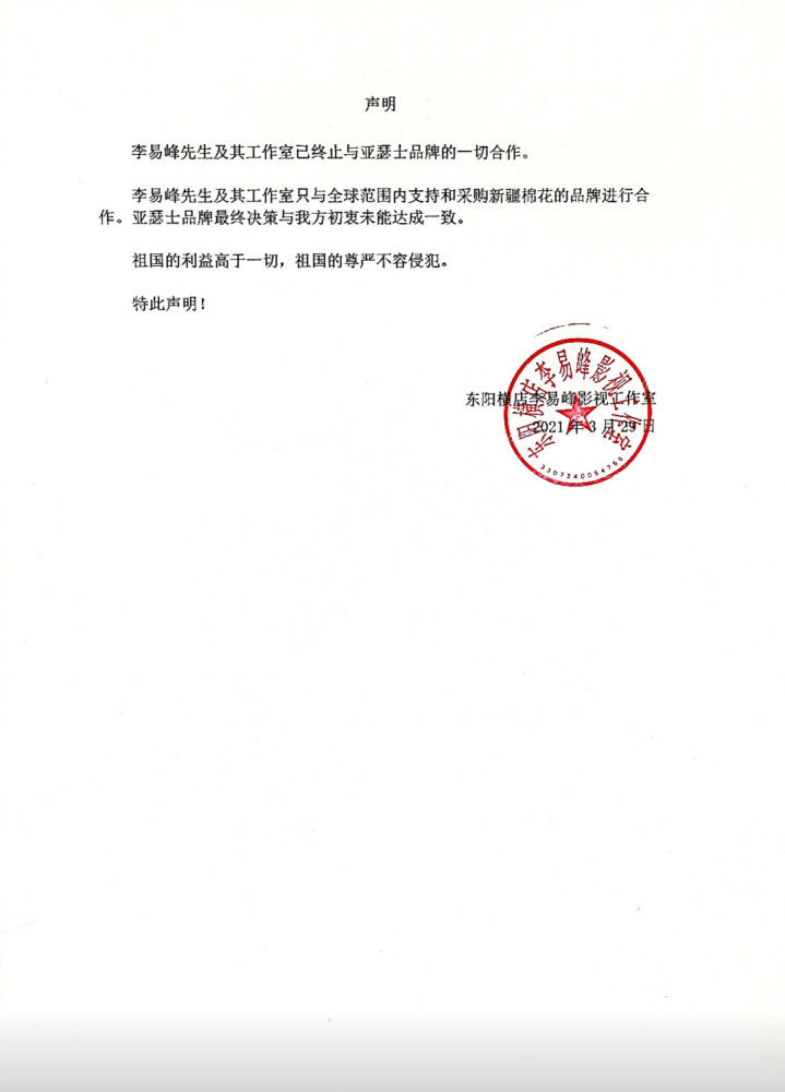 李易峰终止与亚瑟士合作 对此你想说点什么?
