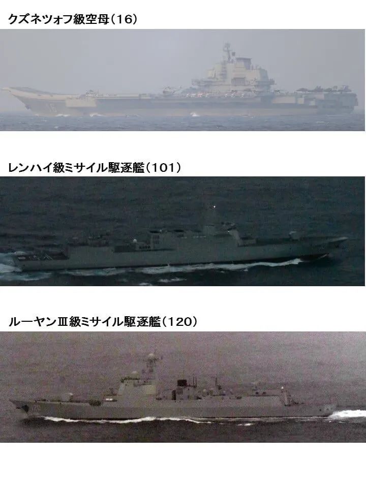 日本自卫队拍摄到的“辽宁”舰、“太原”舰和“南昌”舰