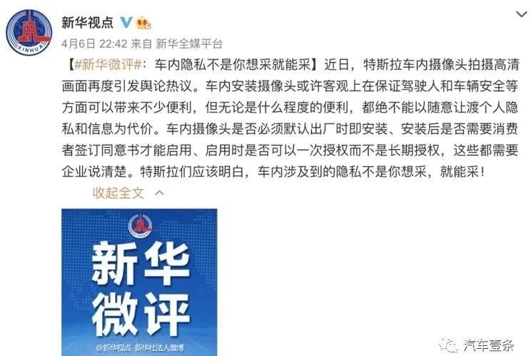 新华社对特斯拉车内摄像头事件做出的回应
