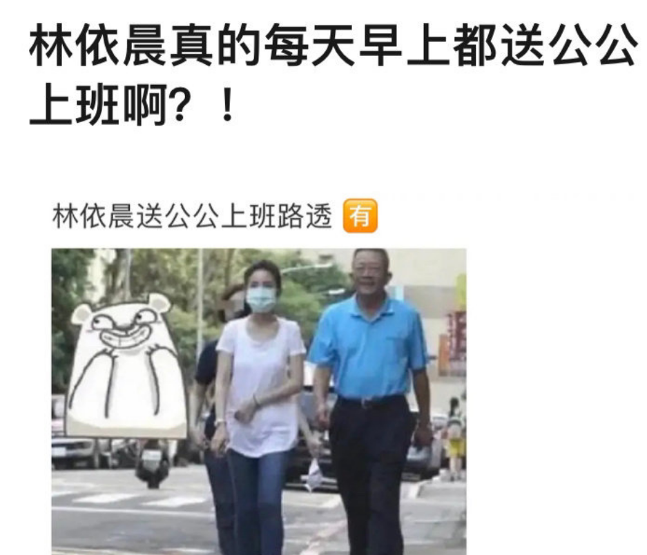 这还不算,还有网友曝光了林依晨每天送公公上班的路透照。有些女粉丝看了以后,恨铁不成钢,明明林依晨颜值逆天,身材完美,加上又能赚钱,为什么要甘心当家庭主妇?这不是自甘堕落吗?