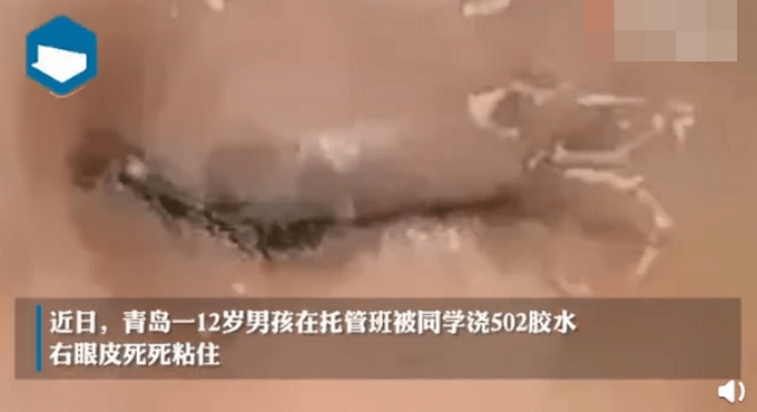 原标题:青岛12岁男孩被托管班同学浇502胶水,右眼皮死死粘住!网友怒了