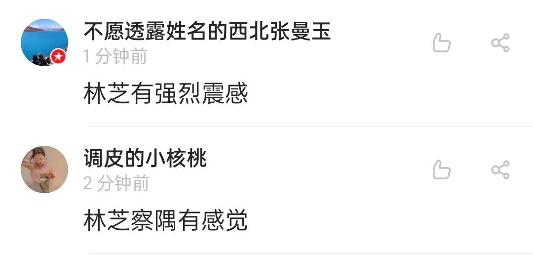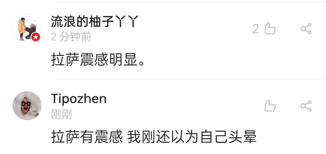 中国地震台网微博下,有网友评论说:拉萨震感明显,林芝米林有震感。