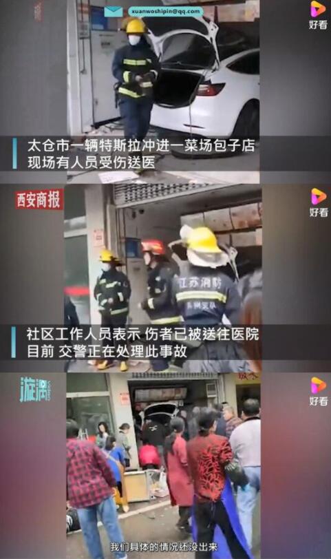 事发地点位于江苏太仓新区世福菜场,有目击者称,今日上午9时许,一辆特斯拉冲进了世福菜场的“巴比馒头”店,导致馒头店前摆摊的一位女士和店内的老板娘受伤,她们已被送至太仓市第一人民医院。