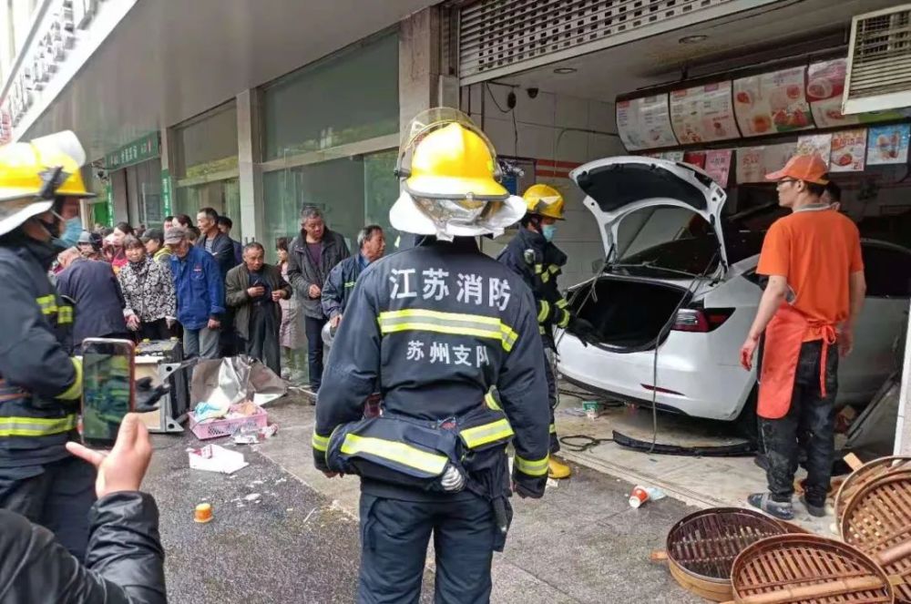 4月27日上午,一辆特斯拉轿车冲入江苏苏州太仓一馒头店内,目击者称事故造成两人受伤。社区人员表示,受伤老人已被送往医院,暂无大碍。目前,现场已被封锁,交警正在处理此事故。