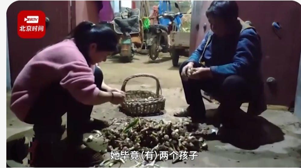 5月3日,山东济宁。五一假期即将结束,李女士返程前,妈妈准备了40斤大蒜。因次日凌晨五点李女士就要离家,妈妈晚上戴头灯去蒜地挖蒜。