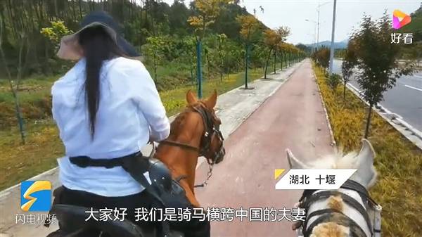 去年4月7日开始,来自福建泉州的郑景泰和妻子骑着马,从新疆伊犁出发,一路回家,今年五一期间达到了湖北十堰。