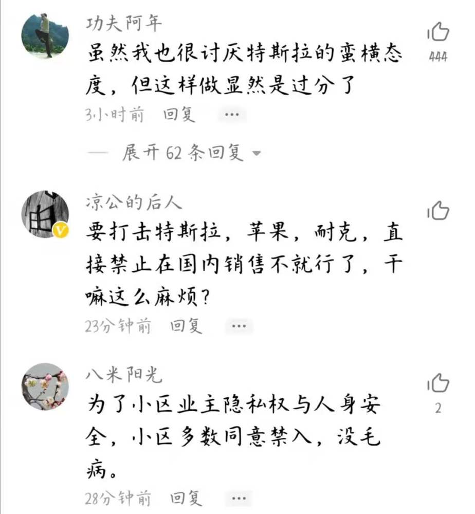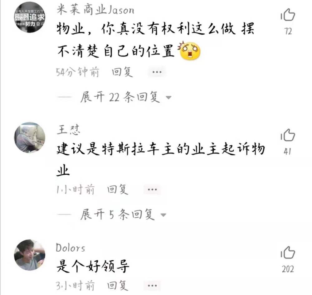 此事在网上引起热议,有人表示,特斯拉存在安全隐患,小区这么做,是为居民着想,是件好事。也有人强烈反对,大家表示,特斯拉有问题,应该追究特斯拉的责任,小区自行其是,禁止特斯拉入内,这明显是对居民的一种侵权,开特斯拉的业主,权益受到侵犯,应该向物业追讨。众说纷纭,莫衷一是。