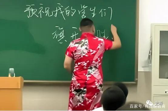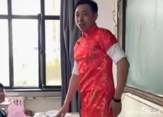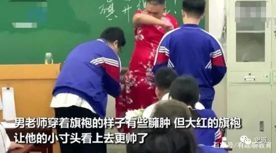 其实这是一位高三的老师,在高考即将到来之前,为了给班级里面的学生加油打气,同时也是为了让学生轻松一笑!于是就身穿了这身红色旗袍闪亮登场!