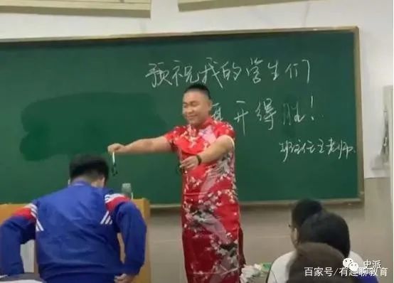 其实这位老师的用心良苦还是感动了不少人,网友还戏称:笑着笑着就哭了!其实不仅是这一位男老师身穿旗袍给学生们打气,还有着别的老师也是身穿旗袍。